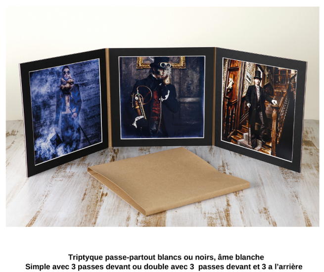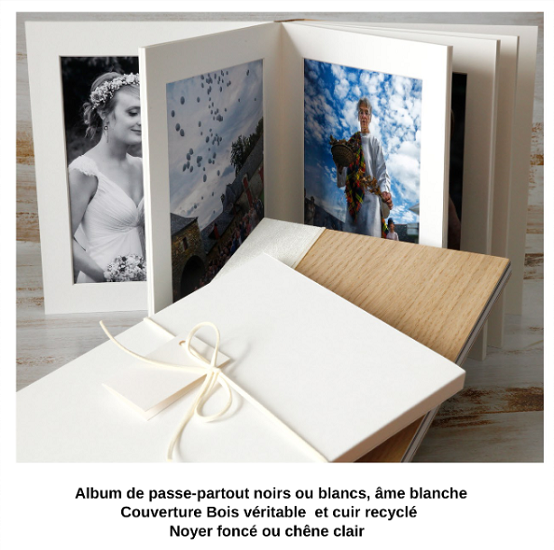 Passe-partout noirs ou blancs, couverture bois et cuir