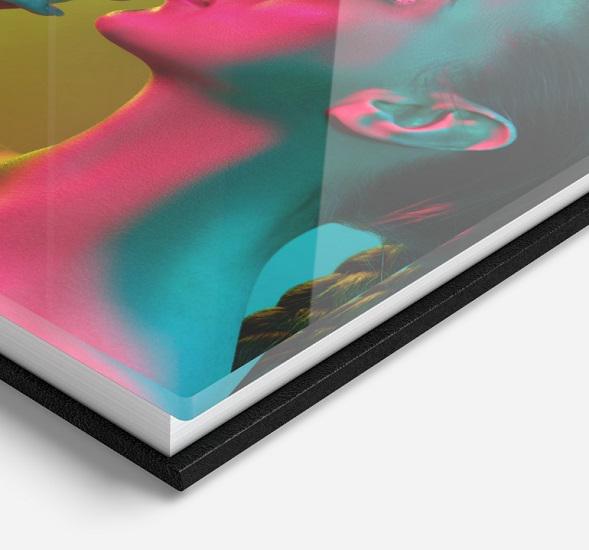 Couverture en verre acrylic pour un rendu 3D. Papier haute qualité, dos couleurs au choix.